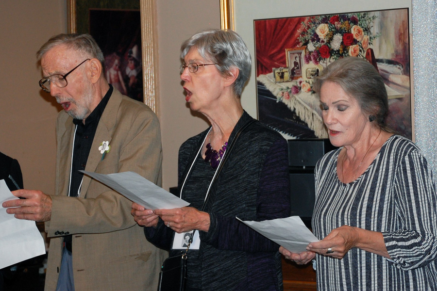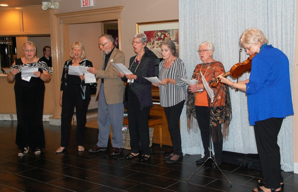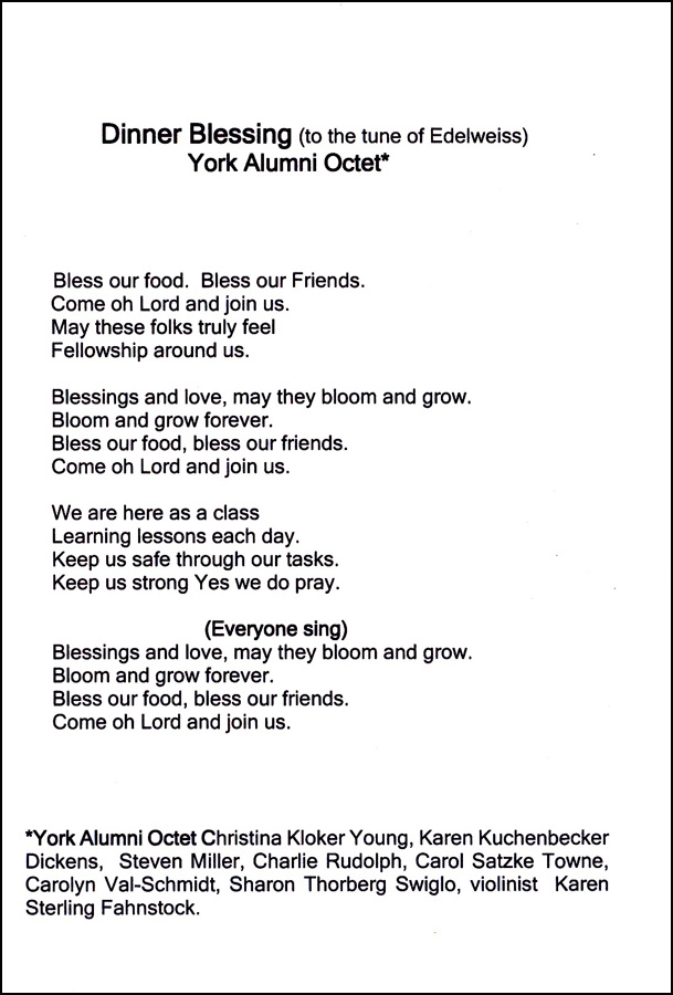 Before dinner, violinist Karen Sterling Fahnstock accompanied six former York choir members and guests for a dinner blessing.